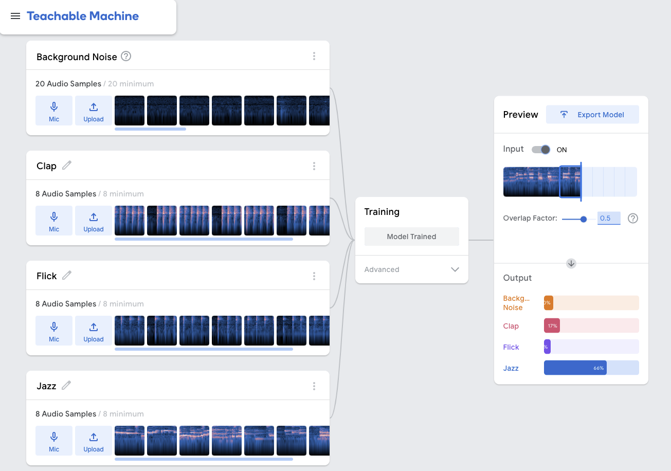 I trained a TensorFlow.js audio model specifically on Rudy’s vocalizations using browser-compatible formats. This required collecting samples, cleaning audio data, labeling training sets, and optimizing the model for on-device inference. To prevent false-positives and “double-counts,” I implemented smoothing logic, confidence thresholds, and a 1000ms cool-down window.