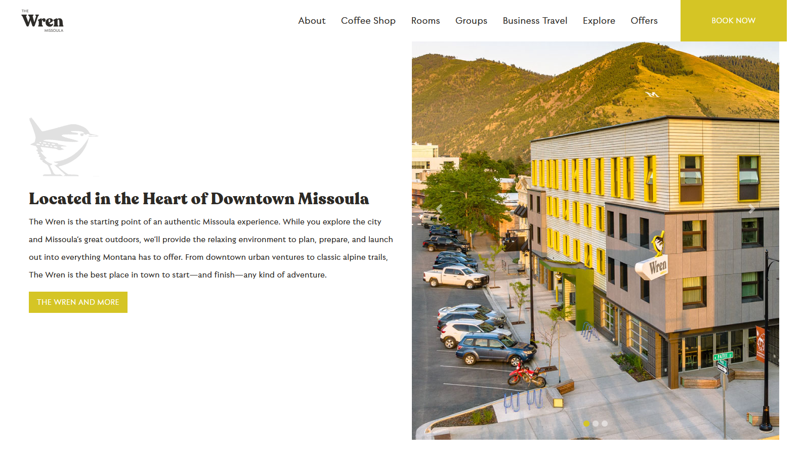 I designed the website for The Wren, a boutique hotel in Missoula, MT, creating a digital presence that reflects the property’s modern yet inviting character. The site highlights The Wren’s central location, unique design, and vibrant local connections while providing an intuitive booking experience for guests. With clean layouts, bold visuals, and clear navigation, the website effectively captures the hotel’s personality and makes it easy for travelers to explore amenities, rooms, and the surrounding Missoula community.